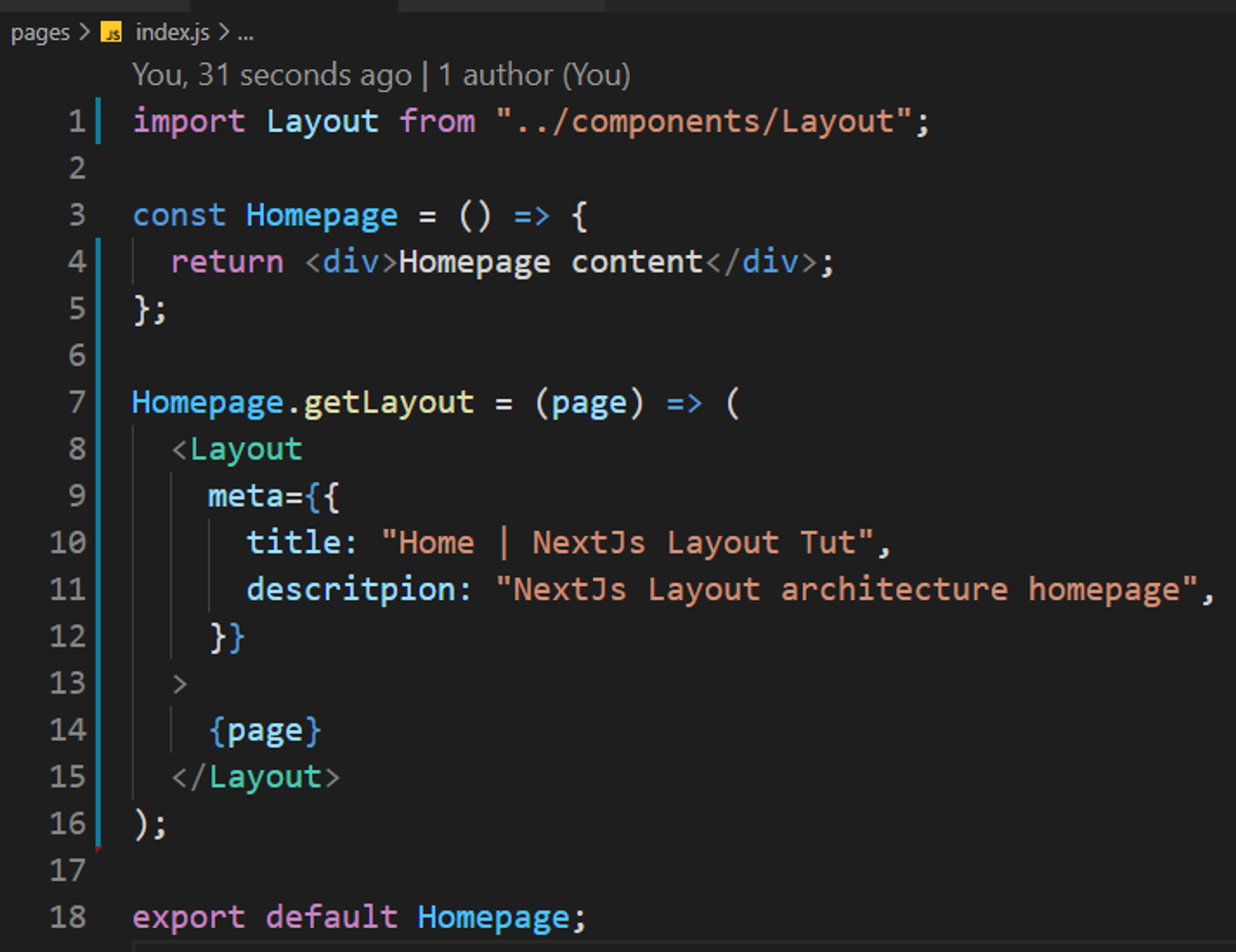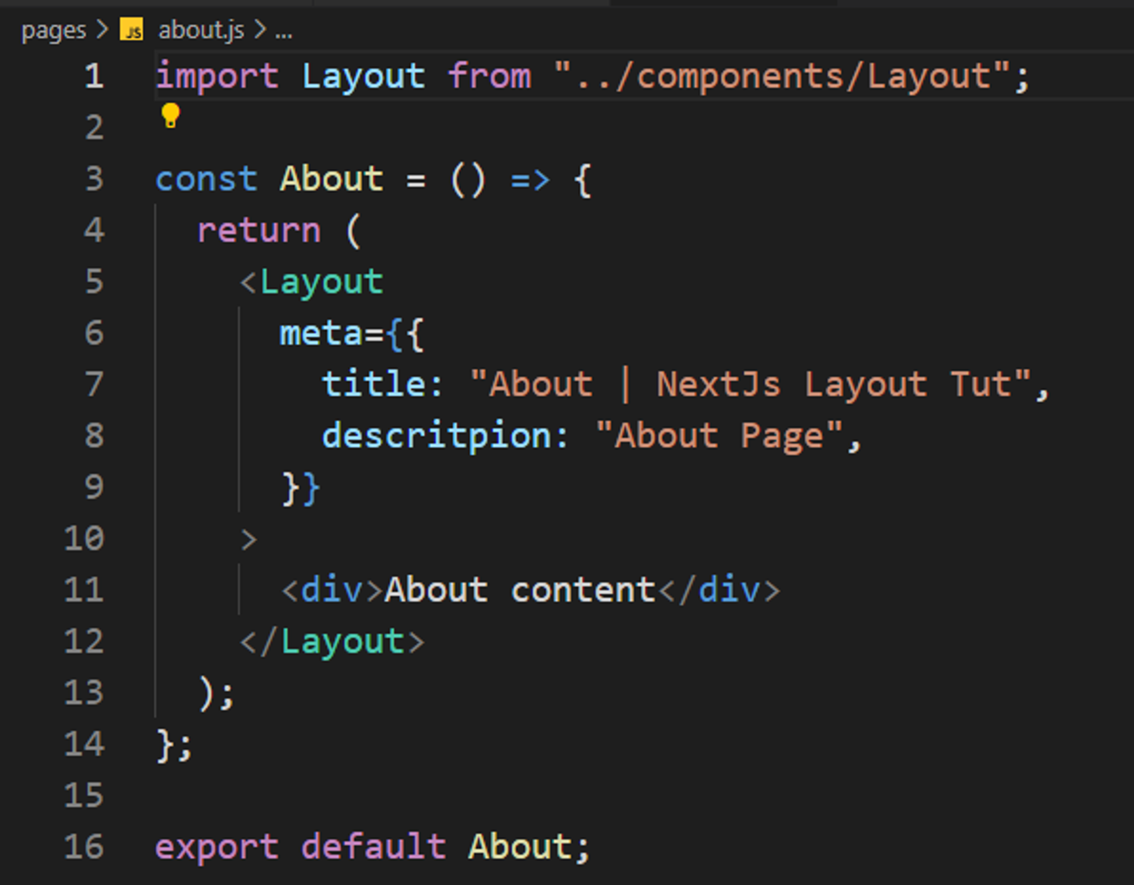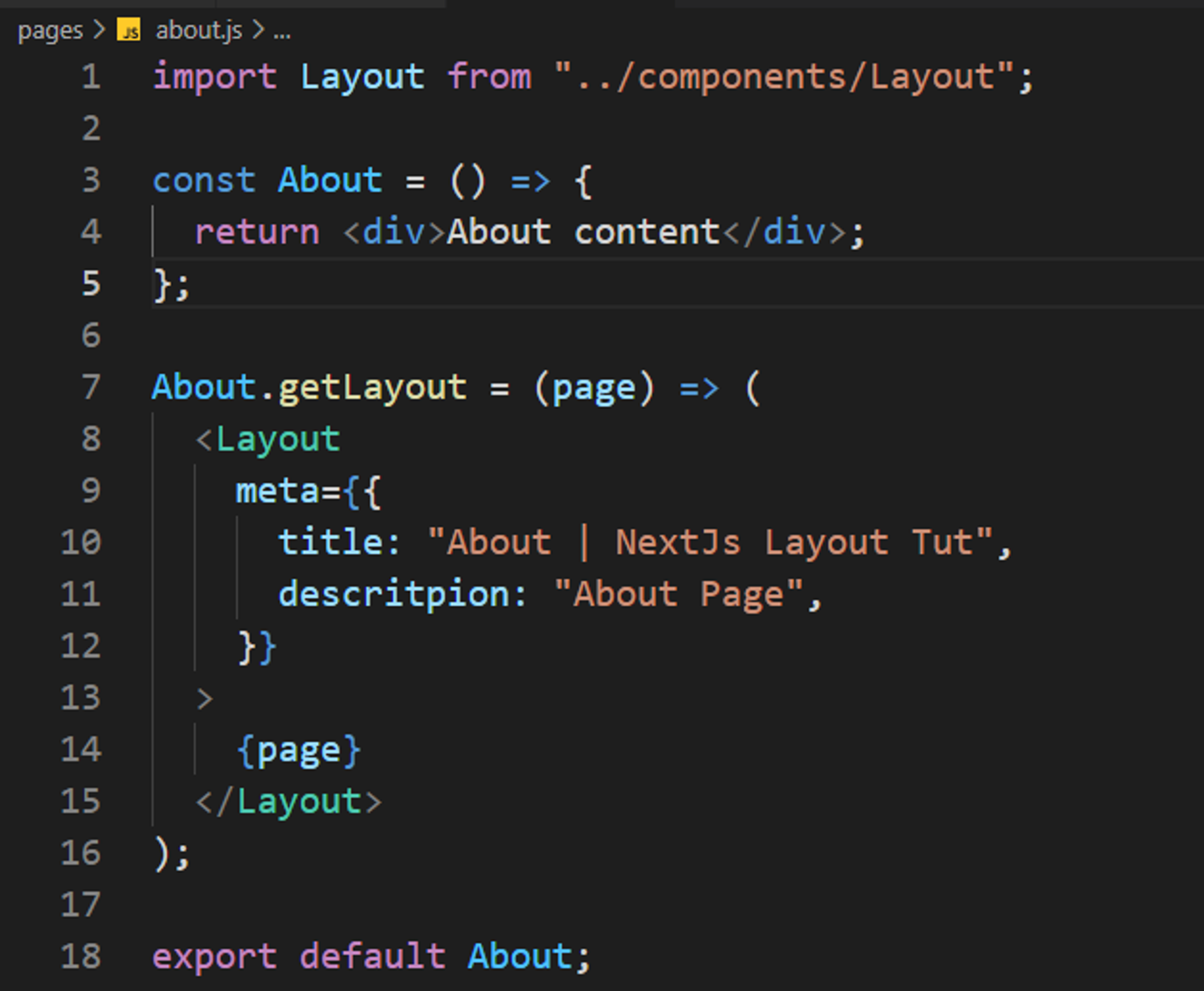 Now let's implement this layout inside our pages, and make the following changes to index.js and about.js inside pages directory;
