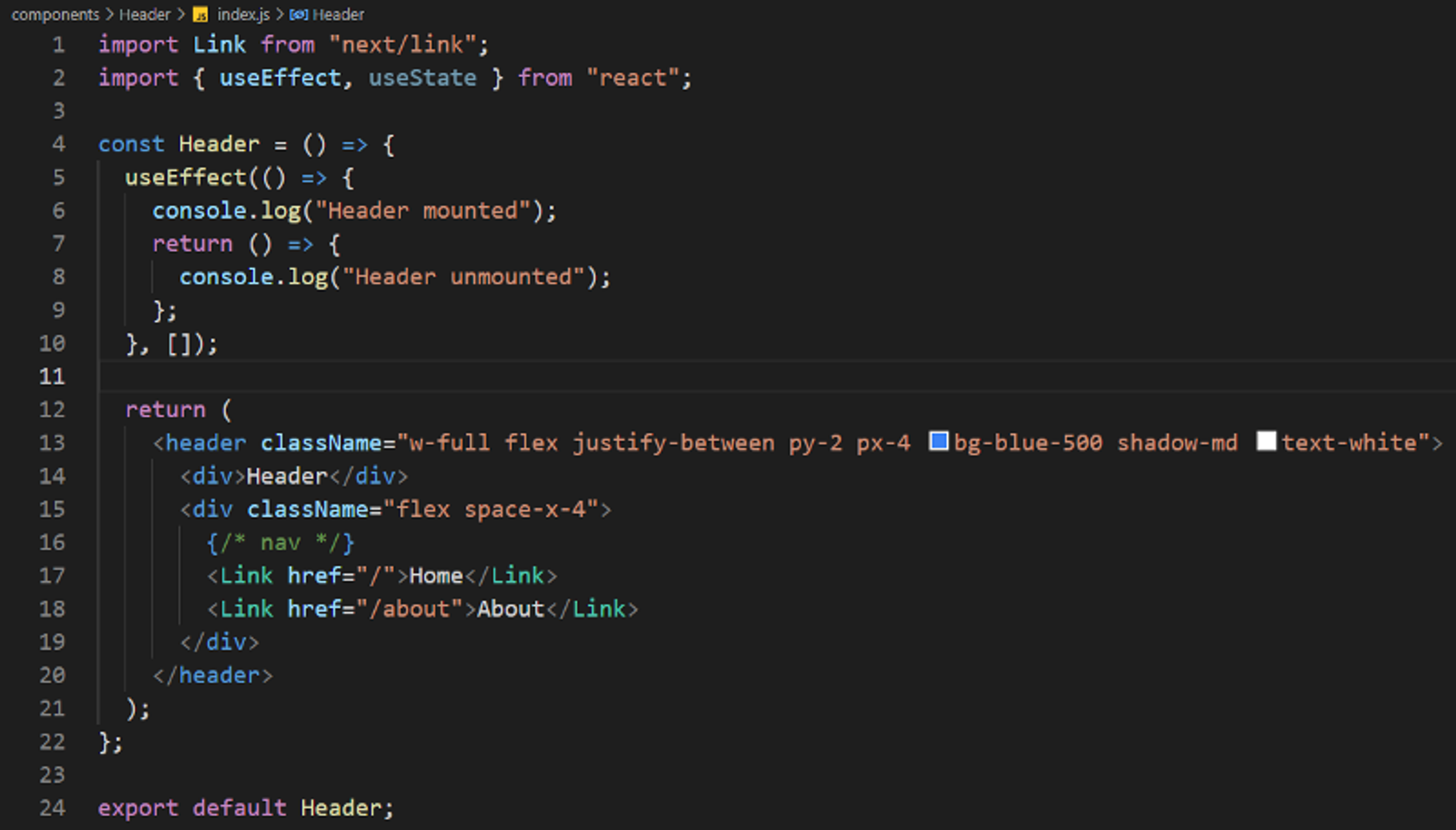 Now our Header component should look like this;